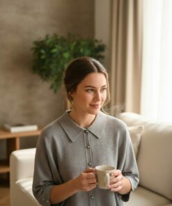 Son col délicatement ouvert et sa patte de boutonnage ornée de boutons apportent une note féminine et élégante. Ses manches longues au tombé fluide ajoutent du mouvement et renforcent son allure aérienne. Facile à porter, elle sublime aussi bien une silhouette habillée qu’un look plus casual.