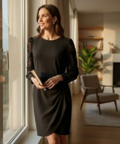 Sa coupe fluide et ses manches légèrement volumineuses offrent une silhouette moderne et confortable. L’encolure subtilement ouverte met en valeur le décolleté pour un look à la fois chic et naturel.