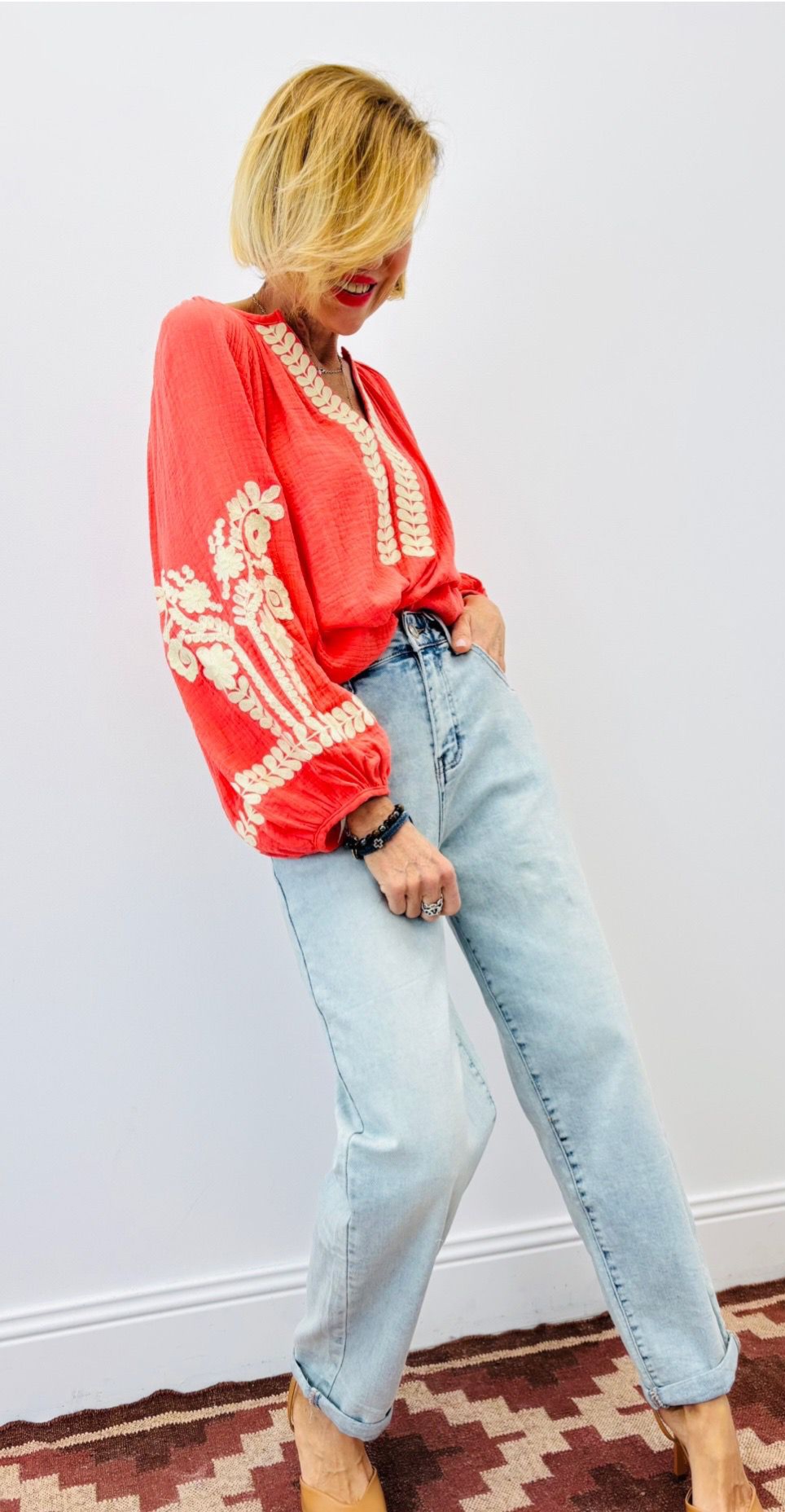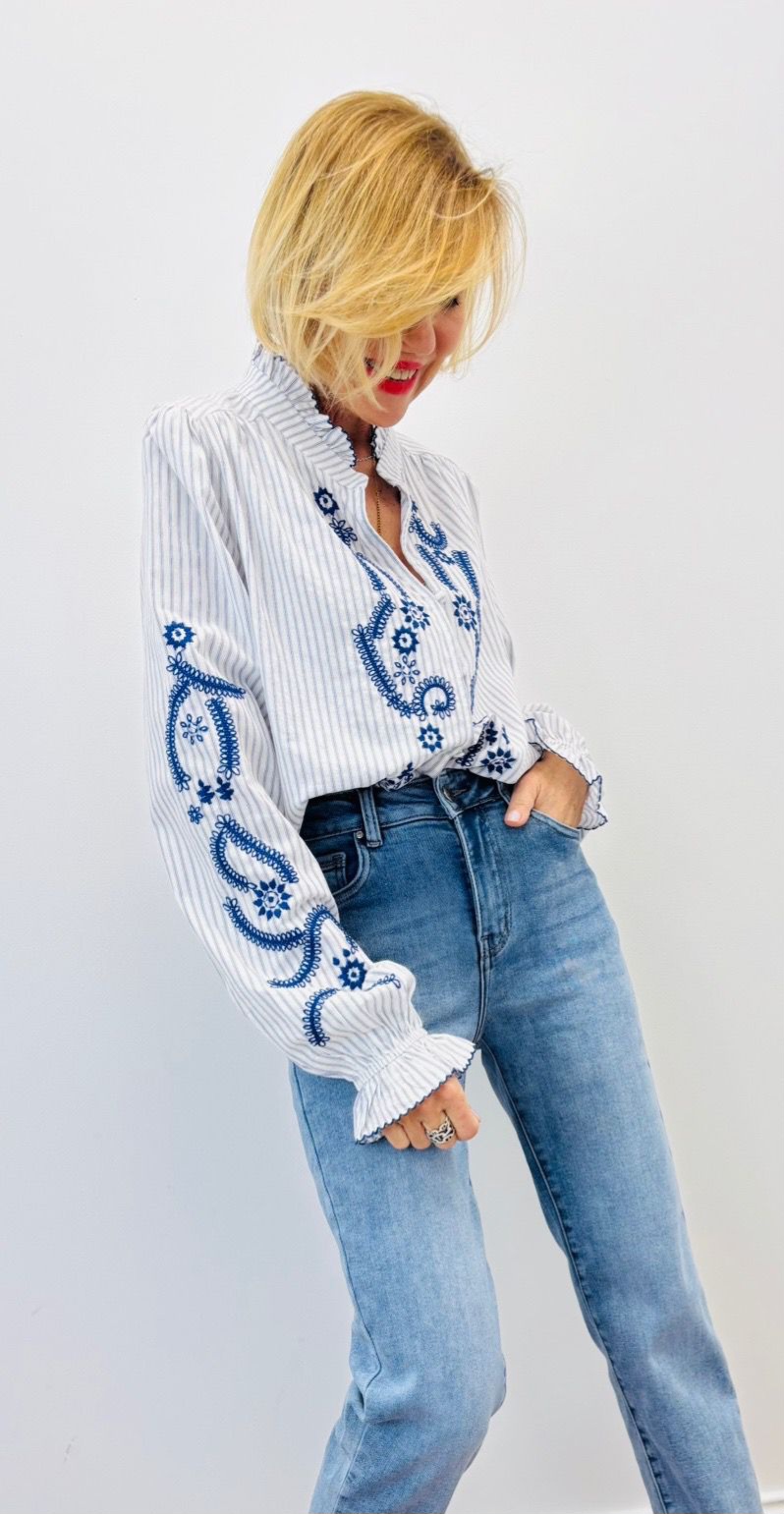 La Chemise Cléa est une pièce élégante qui combine raffinement et style bohème chic. Ses délicates broderies et ses fines rayures apportent du caractère à cette chemise tout en conservant une allure féminine et intemporelle.