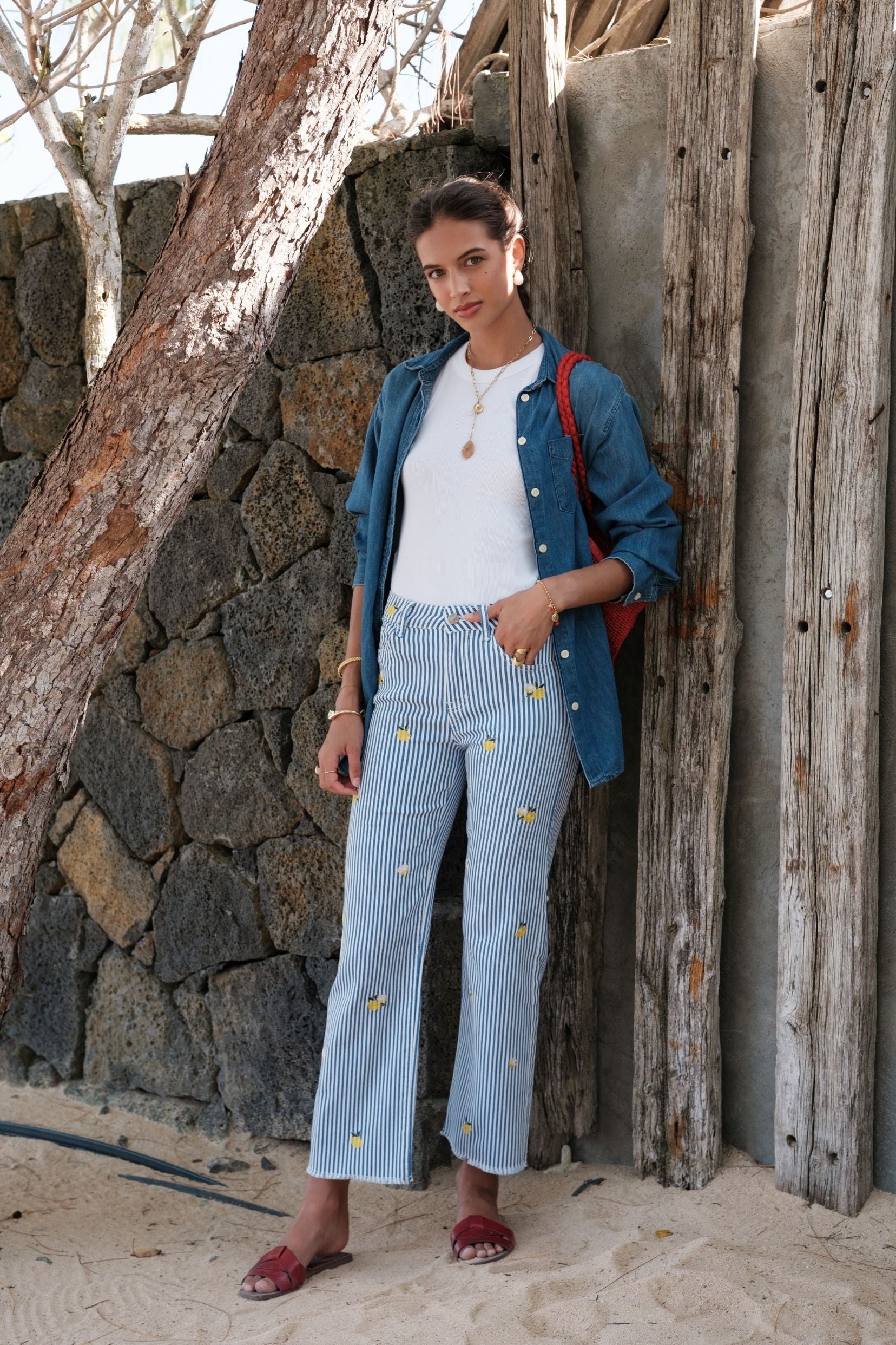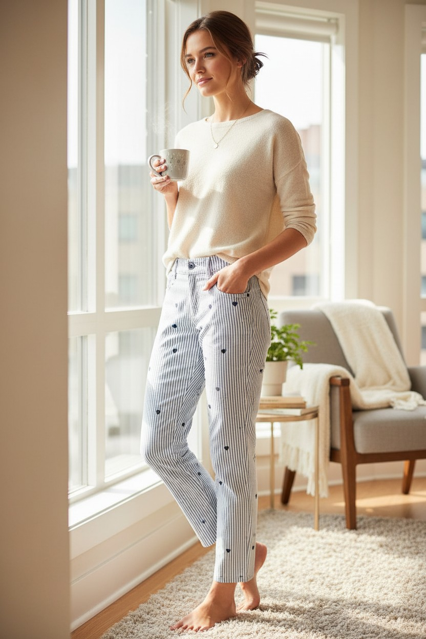 Le Jean Cleya est une pièce tendance qui combine confort et style pour un look à la fois moderne et féminin. Son motif rayé délicat agrémenté de petits détails brodés apporte une touche d’originalité tout en restant facile à porter au quotidien.