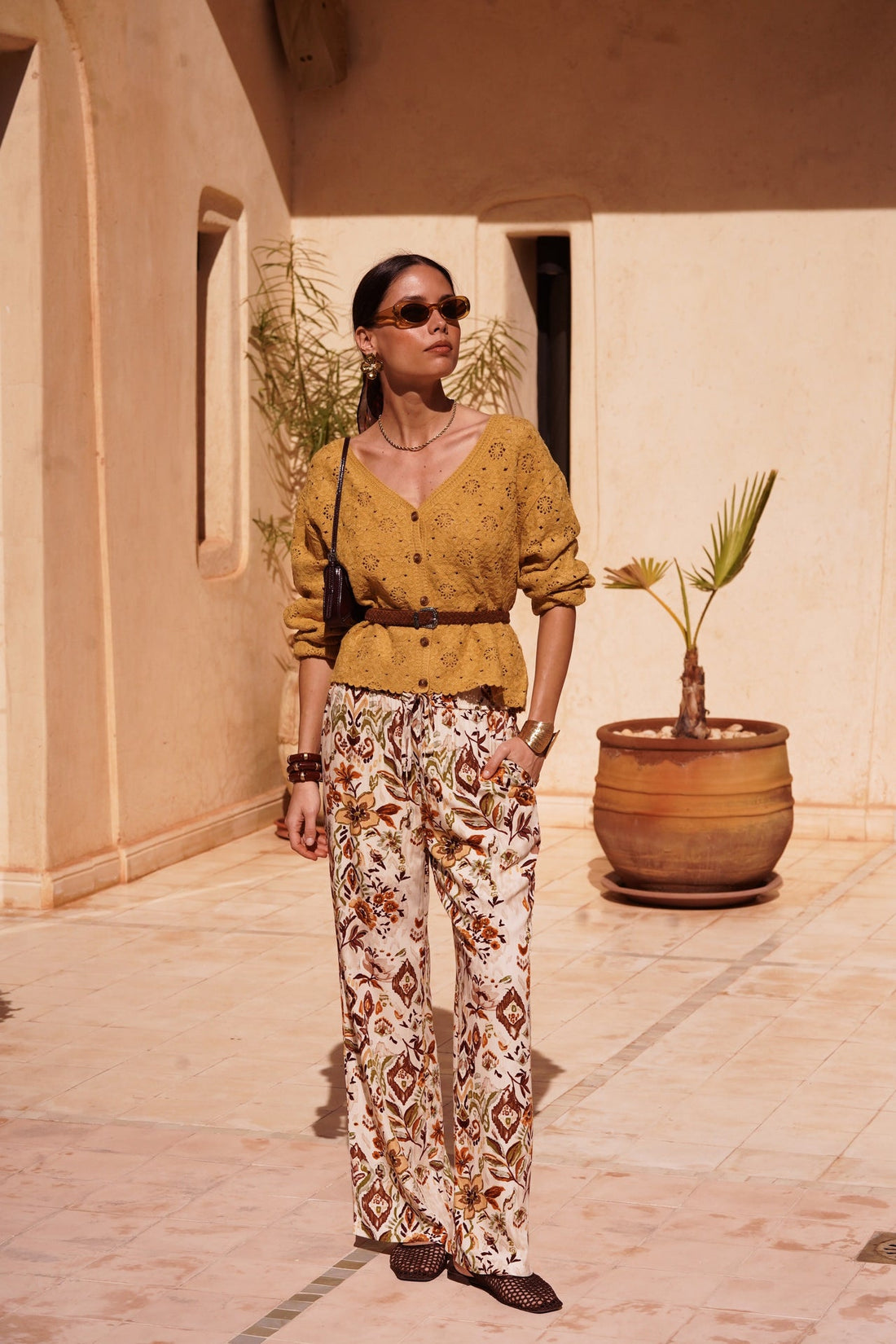 Le Pantalon Saffa séduit par son allure fluide et son imprimé floral délicat, parfait pour une silhouette estivale élégante et décontractée.