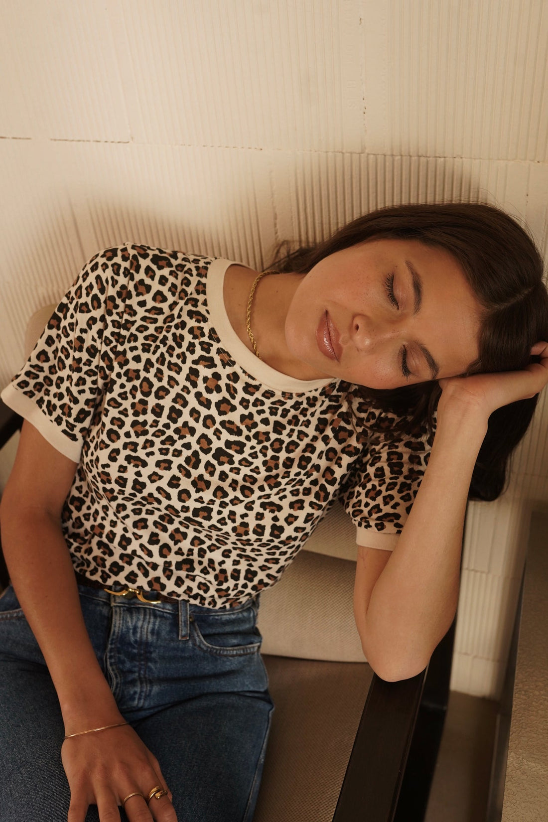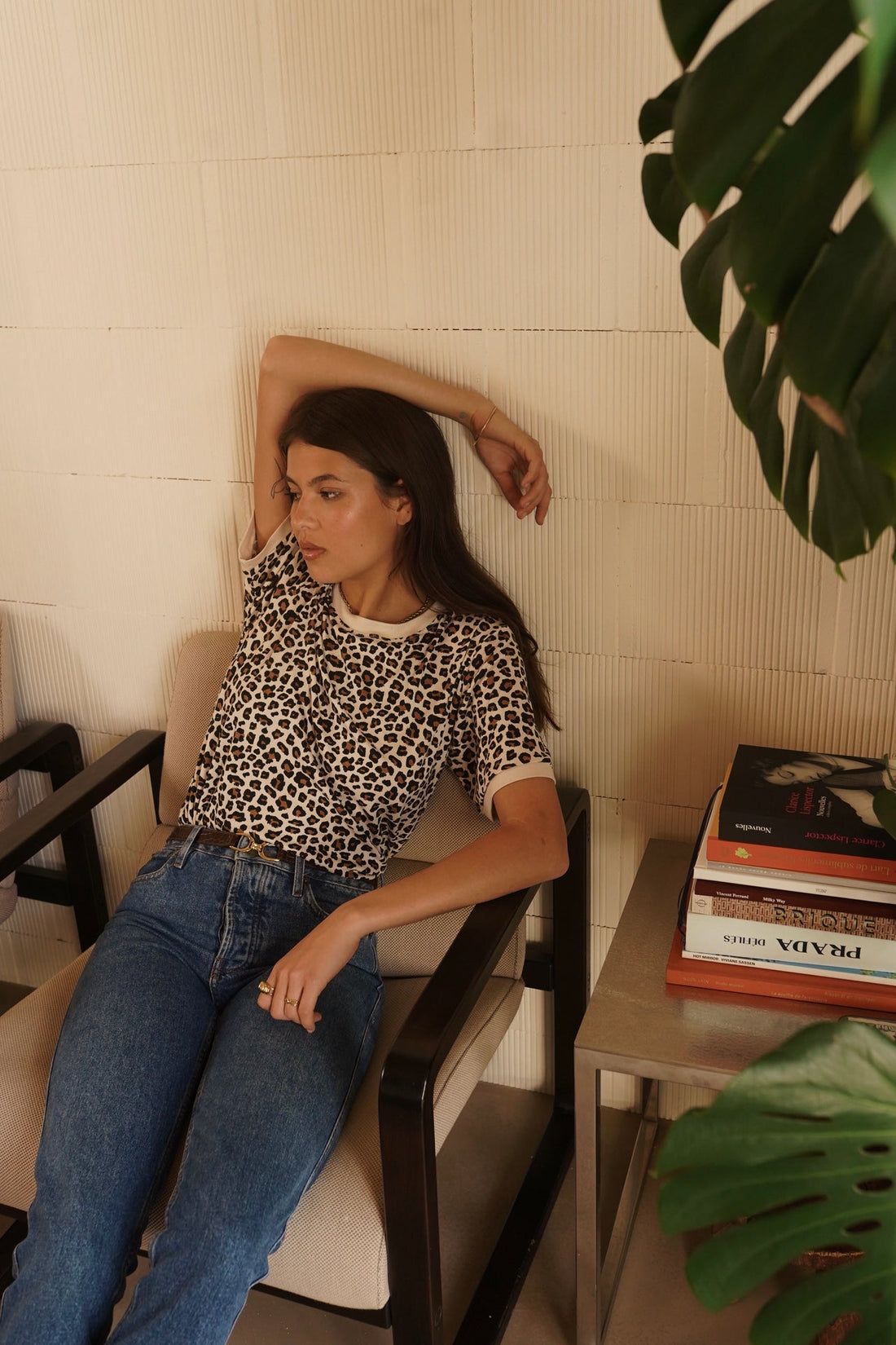 Le Tee-shirt Andrea revisite l’imprimé léopard dans une version chic et décontractée. Son col rond et ses bords de manches contrastés en beige apportent une finition élégante qui sublime cette pièce audacieuse.