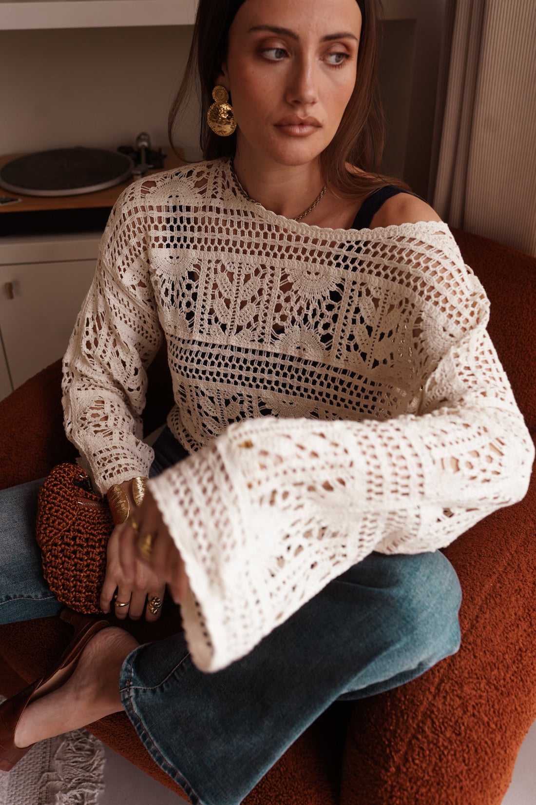 Le Top Mathis séduit par son esprit bohème et sa maille crochet délicatement ajourée. Son coloris écru lumineux apporte une touche naturelle et élégante à toutes vos tenues.