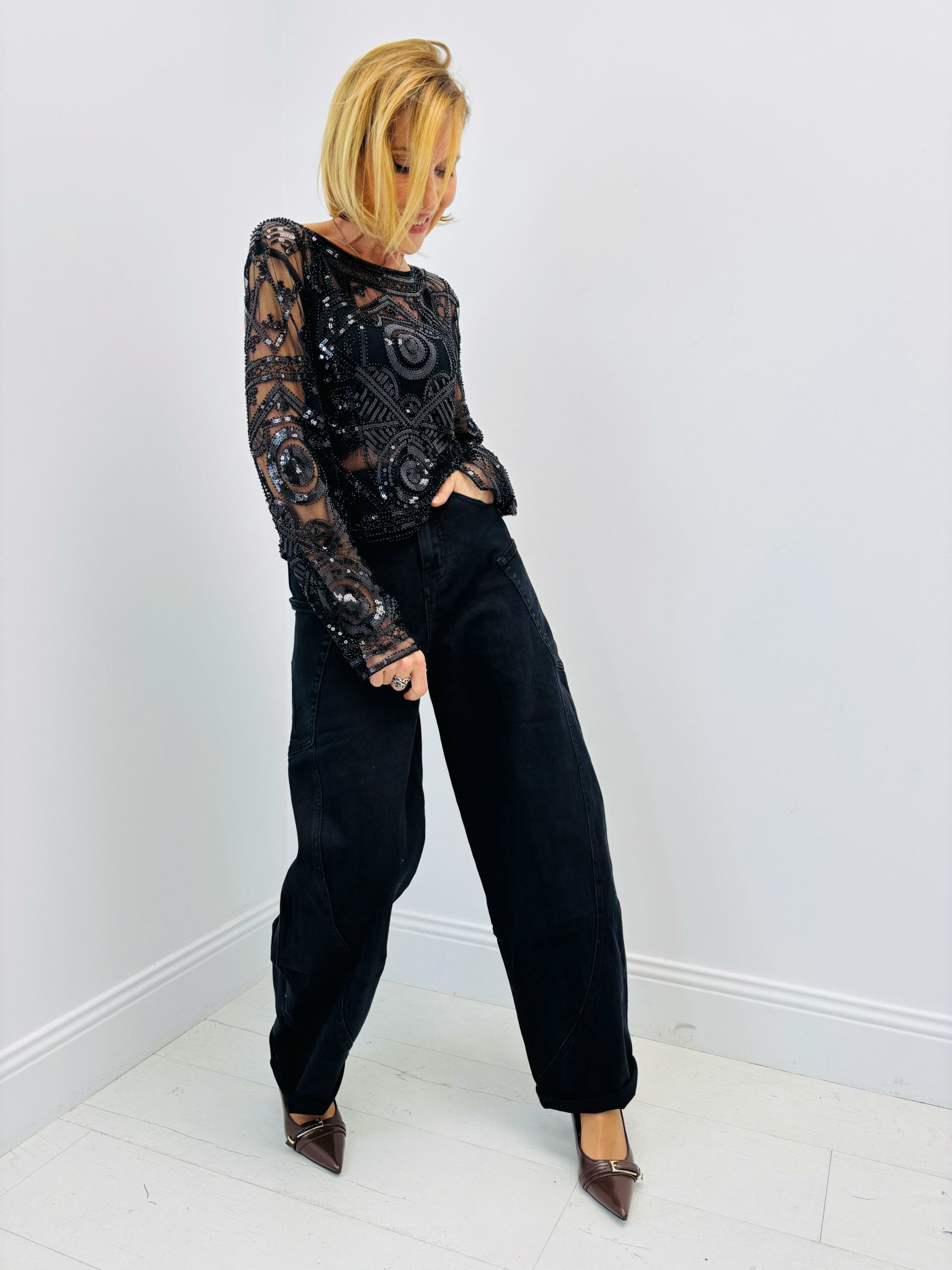 Si vous recherchez une pièce forte pour vos tenues habillées, ce top est un véritable coup de cœur. Élégant, lumineux et résolument féminin, il apporte instantanément une touche glamour à votre dressing.