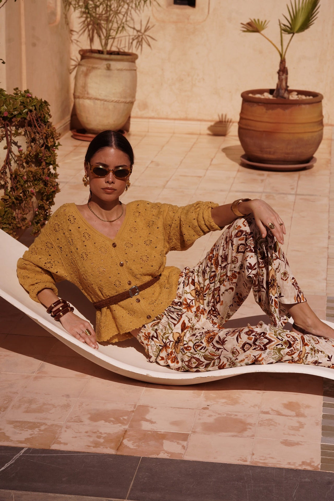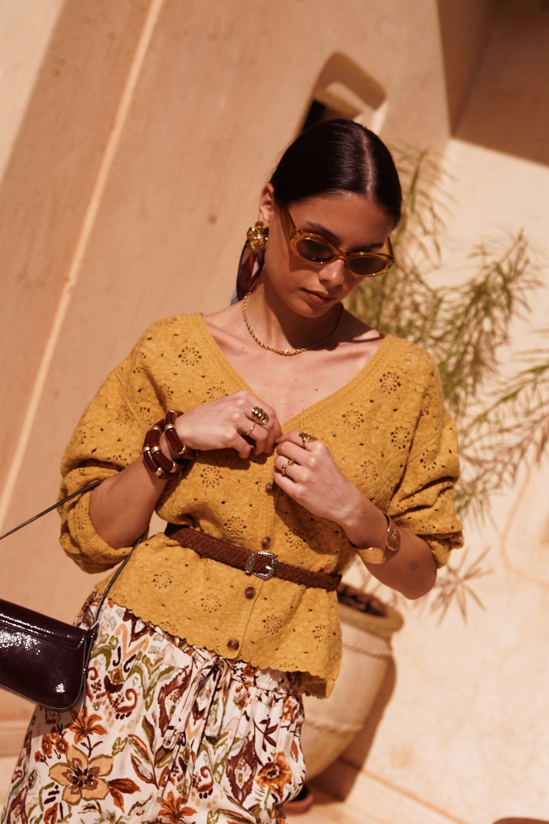 👉 À porter avec un jean, un pantalon fluide ou une jupe pour un look bohème chic et lumineux.